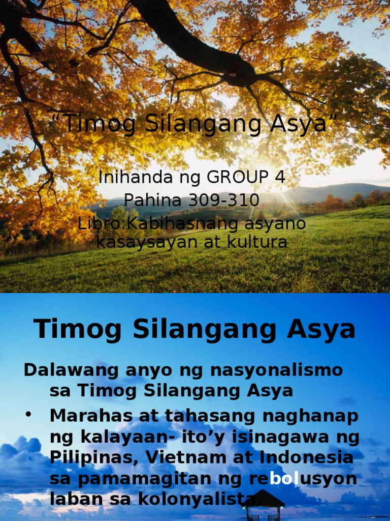 Contextual translation of ano ang ingles ng timog silangang asya into English. Ang Timog-silangang Asya ay isang subrehiyon ng kontinenteng Asya na binubuo ng mga bansang heograpikal nasa timog ng Tsina silangan ng Indiya kanluran ng Bagong Guinea at hilaga ng Australya. Ang Asya ang pinakamalaking kontinente at sumasaklaw sa humigit-kumulang na ikatlong bahagi ng mundoMay sukat itong 49694700 milya kuwadrado mi 2Ito ay nahihiwalay sa Europa sa pamamagitan ng isang makinaryang libu-libong linya ang dumadaan buhat sa Bundok Ural patungong Dagat CaspianBulubundukin ng Caucasus at sa Dagat Itim Black SeaAng hangganang naghahati sa Africa at Asya ay ang.